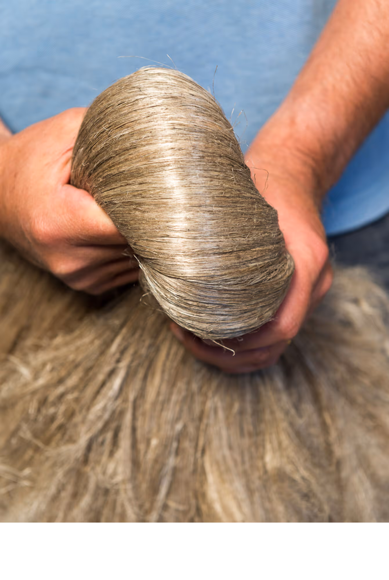 From plant to fabric, linen undergoes a process of three phases - sowing, scutching, and hackling. The flax plant is pulled out of the ground to preserve the length of its fibre. Following 6 weeks of the fibre lying on the field in the sun, it goes through scutching, the removal of the fibrous skin from the central wood. The fibres are then combed and weaved, making them into a glossy, extra-fine fabric.